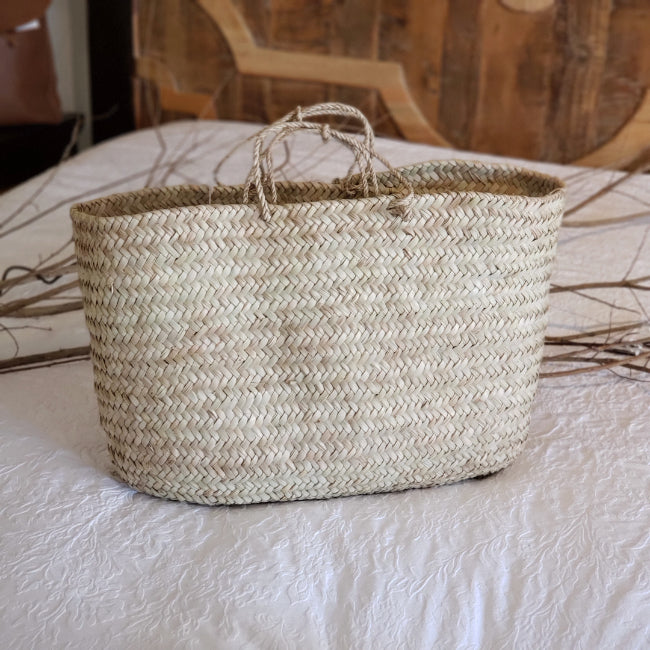 Woven from palm leaves by skilled basketweavers in Mali, these strong and lightweight baskets will hold plenty of farmer's market finds with ease.
