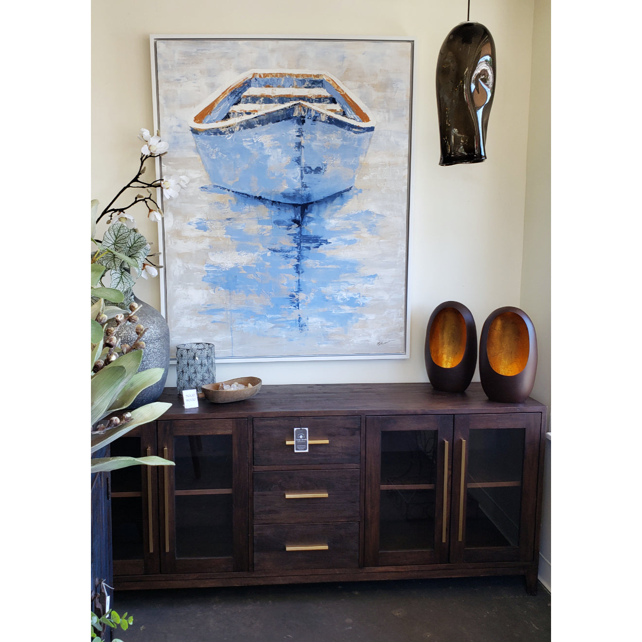 The Martin console is handcrafted using solid rosewood and features brass details.