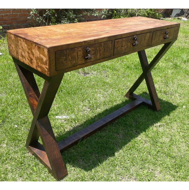 Solid reclaimed wood accented with hand forged drawer pulls.