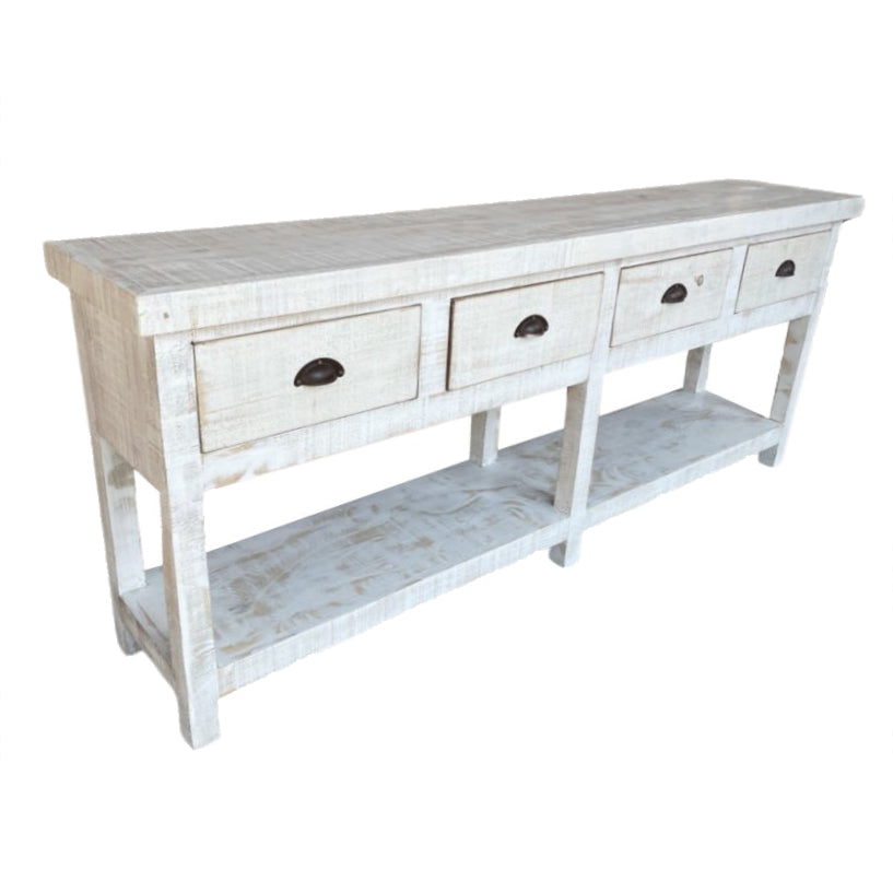 This Carolina 4 Drawer Console is the perfect blend of sturdy, solid wood construction and simple yet stylish design. Hand crafted using solid wood and a distressed finish, it offers quality construction, plenty of drawers and a shelf for ample storage. Create that desired look with an exquisite piece that speaks to your style!