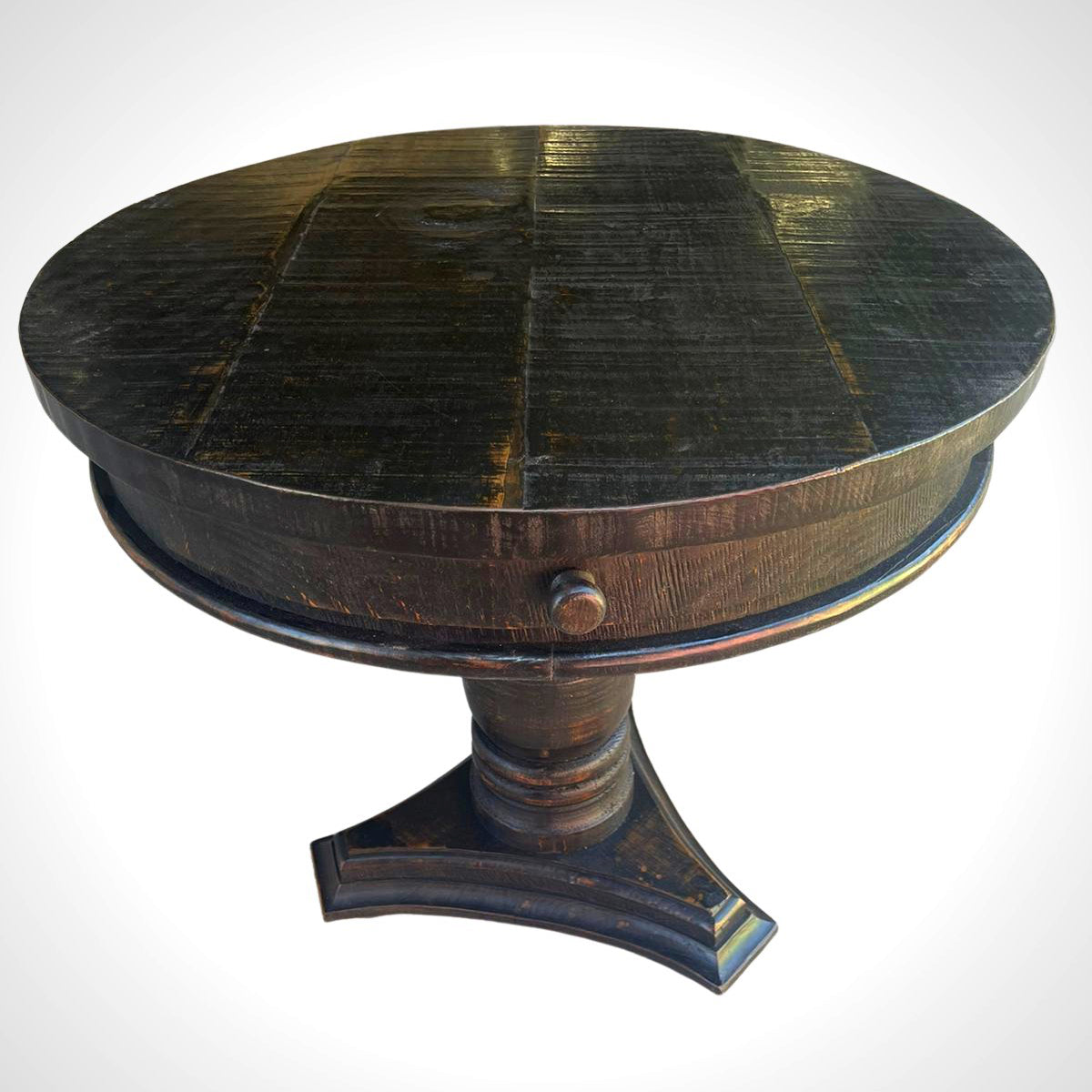 The Pamona Table is hand crafted with solid reclaimed wood with an multi-step hand distressed finish. This attractive side table may be the perfect piece for your space. Drop your car keys in the small drawer and save time looking in the morning.