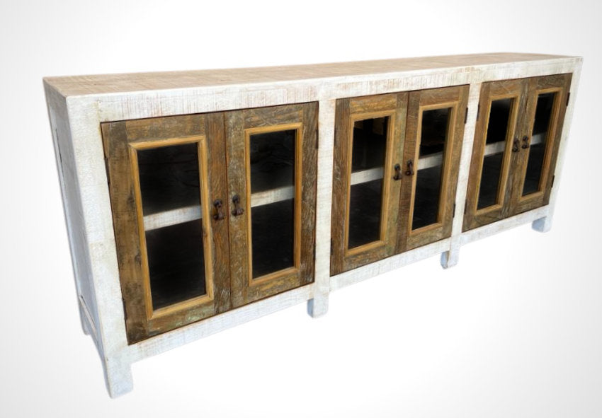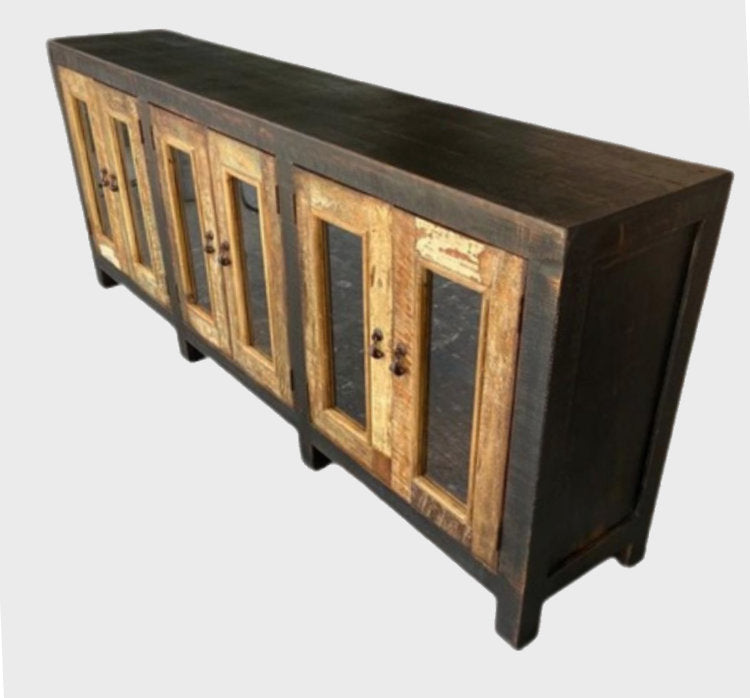 The Nadine console is crafted from a mix of new and reclaimed wood and features details such as handmade iron pulls. The multi-step finish combined with authentic reclaimed wood from old cabins creates the appearance of a vintage heirloom. Equipped with six doors and ample storage space it’s sure to be both stunning and useful in any room.