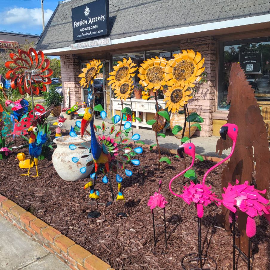 Yard art made from repurposed metal. A variety of styles and sizes are ever changing. Stop in to see what's in stock.